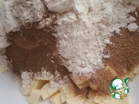 Холодное масло режем кубиками, добавляем сахар, муку и корицу. Руками разминаем до однородной массы. |