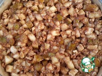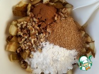 Пока тесто остывает готовим начинку: груши освобождаем от сецевины и нарезаем кубиками, добавляем имельчённый грецкий орех, сахар, корицу и крахмал. Всё тщательно перемешиваем. |
