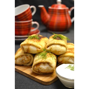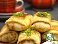 Описание: Сытный завтрак для всей семьи - блинчики на бульоне с начинкой из риса и курицы!