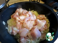 Бедра порезать на крупные куски (можно пополам), посолить и добавить к луку. Обжарить со всех сторон до золотистой корочки. |