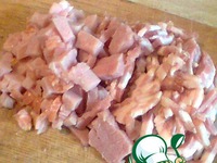 Пока тесто охлаждается, приготовим начинку. Для этого колбасные изделия произвольно нарезать |