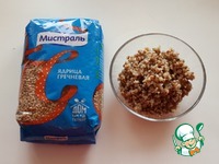 Для пирога понадобится отварная гречка. Я использовала ядрицу гречневую от Мистраль. |