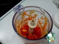 По очереди измельчаем в блендере: кабачок, морковь, перец красный (1/4). |