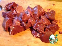 Печень вымыть, обсушить, нарезат небольшими кусочками. |