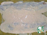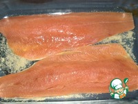 На дно смазанной любым жиром посуды для запекания насыпаем немного панировочных сухариков. Рыбу промокнём бумажными полотенцами и кладём на сухарики "валетиком". |