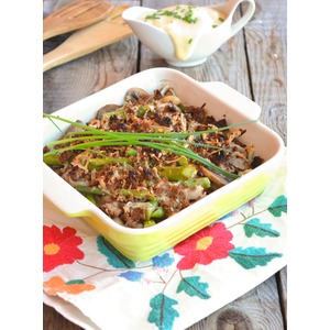 Сверху посыпьте хлебно-сырными крошками и запеките в духовке около 15 минут до корочки. |
