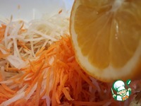 Натираем яблоко в салатник. Поливаем лимонным соком. |