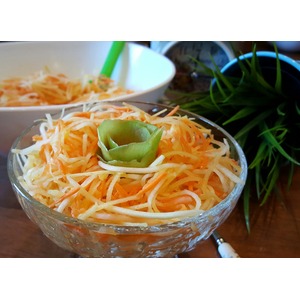 Описание: Простой, но очень хрумкий, сочный и витаминный салатик. Хочу посвятить лучшей Зайке "Поварёнка" Зоеньке (krolya13). Зоенька, ни о чём ты не грусти, а салатиком хрусти!!! Угощайтесь!!!