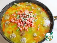 Добавить замороженный горошек (у меня смесь горошка с морковью). |