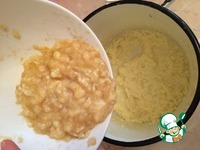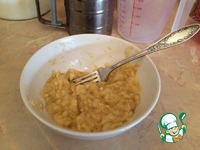 Теперь добавляем измельченный банан (по консистенции он должен быть как пюре). Перемешиваем. |