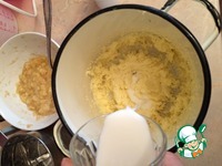 Добавляем ванильный сахар, соль и вливаем молоко. Все перемешиваем. |