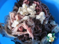 Запекаем еще 15-20 мин. Температура зависит от ожидаемого результата. Если хотите поджаристую поверхность - при 220*. Я запекала при 180 без изменения цвета. |