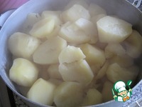 Картофель отвариваем, сливаем полностью воду, разминаем. |