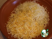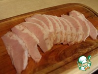 На середину положить натёртый сыр, вырезку обжаренную, бекон. |