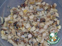 Филе нарезаем на мелкие кубики, стараясь перерезать все косточки. |