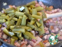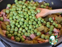 Добавим зеленый горошек. Перемешать и снять с огня. |