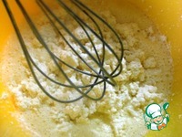 Постепенно всыпая в яично-творожную смесь, хорошо перемешать. |