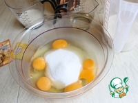 Делаем тесто. Смешаем яйца с сахаром и ванильным сахаром. Взбиваем в пышную массу. |