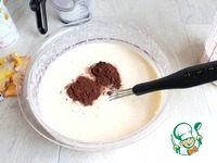 Все хорошо перемешиваем и добавляем просеянную муку с разрыхлителем. |