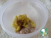 Яблоко сложила в чашечку и запекла в микроволновке в течении 1 минуты на полной мощности. |