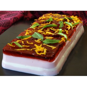Перед подачей десерт переворачиваем на плоское блюдо и украшаем свежей мятой и цедрой апельсина. |