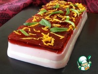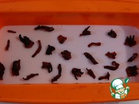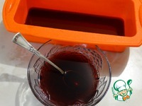 Желатиновую массу делим на три части. Одну часть смешиваем с остывшим и процеженным чаем каркаде, куда добавляем сахар по вкусу. Выливаем первым слоем и ставим в холодильник до застывания. |
