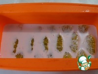 Заливаем апельсиновые кусочки йогуртно-желатиновой смесью и ставим опять в холодильник для застывания. Делаем это в два приема, чтобы апельсиновые кусочки не всплыли. |