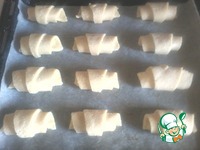 Описание: Очень вкусные, мягкие, нежные рогалики из небольшого количества ингредиентов. Начинку можно сделать любую, из того что найдется на кухне, главное чтоб она не была жидкой. Также их можно делать и без начинки, только добавить в тесто чуть больше сахара и пакетик ванильного сахара. Получаются замечательные творожные булочки! Всем приятного аппетита!)