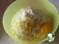 Добавить к нему цедру и яйцо. |