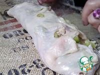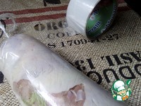 Делаем все очень аккуратно, что бы ничего не развалилось, как только кожу мы уложили, начинаем катать рулет в пленку, |