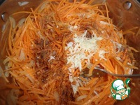 Когда все наши ингредиенты доведены до готовности, достаем из холодильника морковку и все смешиваем в горячем состоянии. Даем настояться 5-10 мин и можно подавать. |