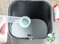 В моей хлебопечке требуется сначала закладывать жидкие ингредиенты и потом сухие. Поэтому сначала выливаем кефир и добавлем в него растительное мало. |