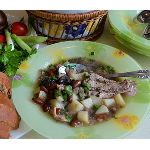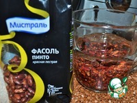 Время приготовления указано без учета варки фасоли и бульона. Фасоль замочить на 3 - 4 часа и отварить полностью, в 1 л. воды с сахаром. Я использую красную фасоль ПИНТО от "Мистраль". |