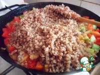 Добавить отварную гречку. Перемешать. Прогреть. |