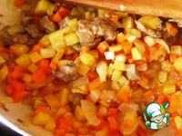 Овощи очистить и нарезать мелкими кубиками. Если репа горчит, ошпарить ее кипятком и обсушить. |