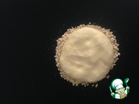 Разделить тесто на 4 части. На стол высыпать 1/4 часть сах. смеси, на вверх положить одну часть теста. |
