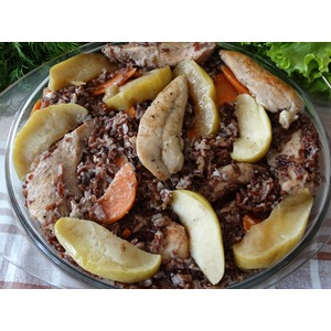 Описание: Никогда не думала, что банальная куриная грудка может быть такой вкусной благодаря красному рису. Рис настолько ароматный, что пока блюдо запеклось в духовке, мы по очереди заглядывали сквозь стекло дверцы духовки - когда же, когда? Очень рекомендую, блюдо диетическое и весьма вкусное!