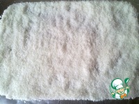На фольгу высыпать кокосовую стружку, оформив в виде прямоугольника. |