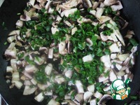 Слегка обжарить на растительном масле. Добавить нарезанные шампиньоны и обжарить все вместе до золотистого цвета. Дать остыть. |