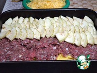 Описание: Рецепт этого блюда родился из чувства протеста. Так вышло, что в моей семье никто, кроме меня, не любит мясо по-французски в традиционном варианте: когда нарезанное тонкими ломтиками мясо укладывается на так же нарезанный картофель. Жена и теща предпочитают, чтобы я готовил это блюдо из мясного фарша. Желательно, чтобы и картошка была натерта на терке, а не порезана. Картошку я отстоял, а вот мясо не удалось. Пришлось делать из мясного фарша.
