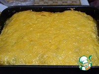 Через 20 минут противень вынимаем, присыпаем все тертым сыром и снова в духовку минут на 20-25. |