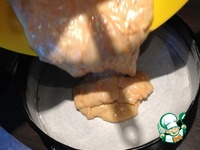 В заранее подготовленную форму (у меня разъемная форма 24 см., обмазана маслом и обсыпана мукой, низ застелен пергаментом) выливаем тесто. |