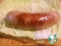 Сверху придавить листом пекинской капусты (можно использовать и салат) И выложить обжаренную колбаску |