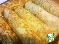 Внешне выпечка похожа на блины, отсюда и название, но по составу - это оладьи. Не зависимо от внешнего вида, состава и названия, вкус превосходный. В качестве начинки я выбрала колбаски для жарки, добавила немного остроты и все это оттеняет сладкий привкус гороха. Это нужно пробовать - словами не описать!