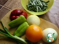 Овощи помыть, нуждающиеся почистить и нашинковать все кубиками. Если брать разноцветные овощи, будет не только лениво, но и красиво. Выложить в просторную миску. |