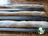 Включить духовку, нагревать до 240 градусов. Расстоявшиеся багеты надсечь острым ножом (лезвием). Отправляем в нагретую духовку. Первые 10 минут выпекать с паром при 240 градусах. |