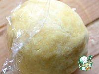Духовку разогреваем до 200 градусов. Готовим основу: тесто получается ОЧЕНЬ ломким, работать с ним не очень просто. Лучше всего прокладывать дно формы бумагой для выпечки, бока смазать маслом и присыпать мукой и не использовать рифленый край, как на фото - тесто липучее. Тесто раскатываем и бережно, но быстро переворачиваем на форму. Перенести его практически невозможно)) Единственное - раскатать и перенести сразу на бумаге. Если все же переворачиваете, то у вас будет ровное и аккуратное дно, а остальное обвалится и дальше работаем руками, придавая основе форму. Оставшееся тесто можно потом использовать для приготовления пресного печенья. |