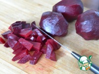 Свеклу отварить, почистить и нарезать на брусочки. |
