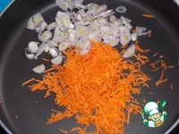 Лук мелко нарезать, морковь натереть на тёрке. Обжарить на растительном масле 2-3 минуты. |