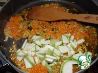 Добавить кабачок к луку и моркови- жарить на медленном огне 5 минут. |
